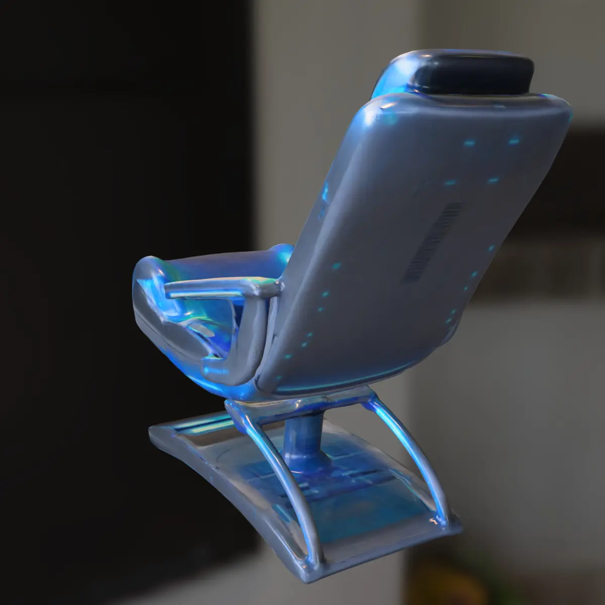 This high-detail 3D model represents a sleek, futuristic recliner chair with metallic finishes and glowing accents. Ideal as a command seat, pilot throne, or luxury sci-fi furniture in futuristic or space-themed environments. Perfect for use in popular games and platforms such as Star Citizen, VRChat, Unity, Unreal Engine projects, Second Life, or The Sims modding community. The model is also optimized for 3D printing.