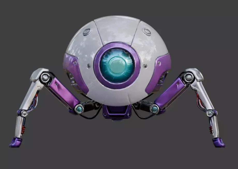 TagsRoboticSpider, HackingDrone, SciFiDrone, 3DModel, Futuristic, SphericalBody, WhiteGloss, PurpleAccents, GameAsset, Realistic, PBR, StealthDrone, Cyberpunk, SurveillanceBot, HighTech, MultiJointed, Emissive, CompanionBot, AIUnit, EnvironmentProp
