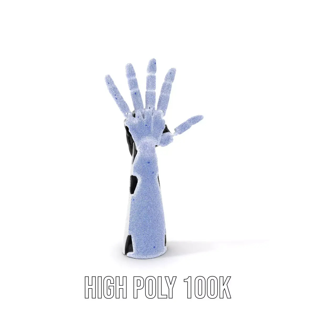 This 3D model pack features a highly detailed, futuristic robotic hand with fully articulated joints, ideal for animations and simulations. Each model has 3 levels of detail: low-poly (1000 triangles for mobile), middle-poly (10,000 triangles for environment), and high-poly (100,000 triangles), which allows for the use of this model in production rendering (such as 3ds Max, Maya, Cinema4D, Blender, Vray/Corona/Cycles and all other), game engines (Unity and Unreal compatible), and interactive presentations, providing a choice of detail based on the LOD System principle. This robotic hand model is perfect for incorporating into science fiction films, educational demonstrations on robotics, or video game design involving cyborgs or futuristic technologies. The model's textures are PBR, Diffuse, NormalMap, and reflection/roughness/metallic, which are suitable for any modern rendering engine. All models are accurately unwrapped and have no overlapping UV. All textures are 4096*4096 in size. The first image is the reference used for creating the 3D model. It is important to carefully evaluate the quality of the model by examining the preview images that display the topology and polygonal mesh. These previews (WIRE and WEB 3D Preview) clearly demonstrate how accurately the model matches the original reference and how well the geometry has been executed. If you like this model, please leave a comment and like. Thank you!