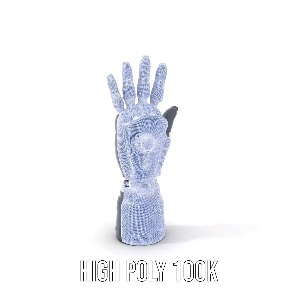 A highly detailed 3D model of a futuristic robotic hand designed for various technological applications. Each model has 3 levels of detail: low-poly (1000 triangles for mobile), middle-poly (10,000 triangles for environment), and high-poly (100,000 triangles), which allows for the use of this model in production rendering (such as 3ds Max, Maya, Cinema 4D, Blender, Vray/Corona/Cycles and all others), game engines (Unity and Unreal compatible), and interactive presentations, providing a choice of detail based on the LOD System principle. Ideal for use in sci-fi animations, robot design demonstrations, and virtual reality experiences. The model's textures are PBR, Diffuse, NormalMap, and reflection/roughness/metallic, which are suitable for any modern rendering engine. All models accurately unwrapped and have no overlapping UVs. All textures are 4096*4096 in size. The first image is the reference used for creating the 3D model. It is important to carefully evaluate the quality of the model by examining the preview images that display the topology and polygonal mesh. These previews (WIRE and WEB 3D Preview) clearly demonstrate how accurately the model matches the original reference and how well the geometry has been executed. Please like and leave a comment for the model if you enjoyed it.