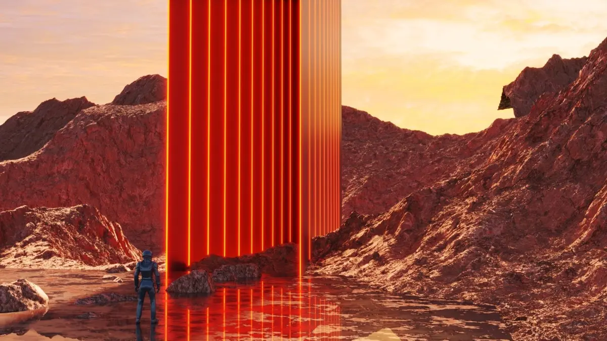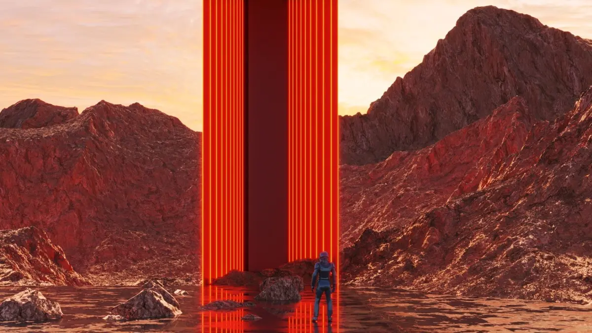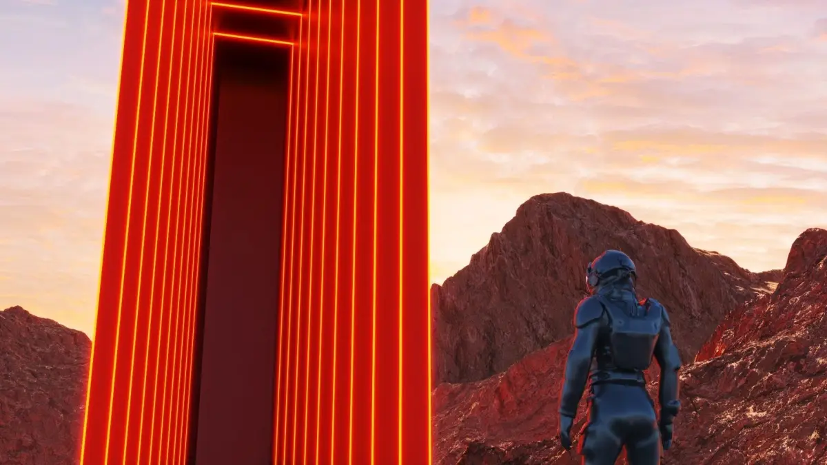 Futuristic concept exterior Portal in Wastelands.