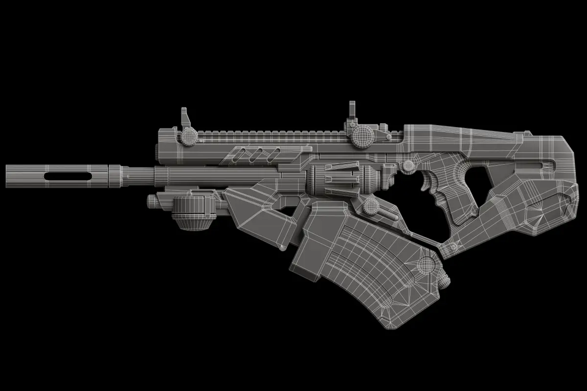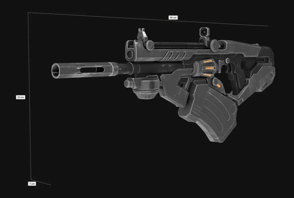 This is a high-quality sci-fi assault rifle model, perfect for use in video games, cinematics, or concept design. The weapon features a futuristic design with a bullpup layout, a rotating chamber near the grip, and energy cell details, giving it a hybrid between ballistic and energy weapon aesthetics.Polygons - 22790 (triangulated - 45376)