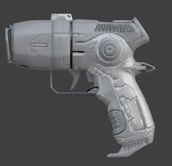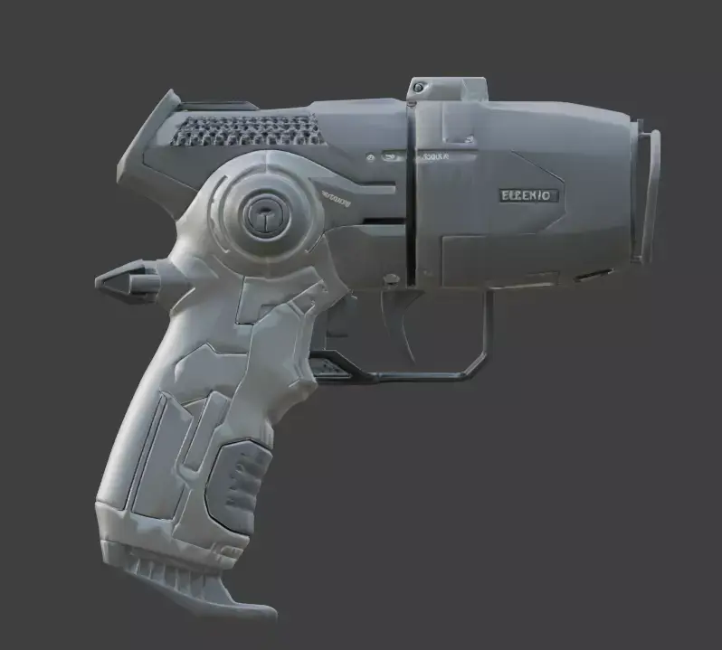 The design highlights a robust modular chassis featuring a large front-facing optical lens protected by a reinforced wire cage, an ergonomic rear grip with textured thumb rests, and an integrated tactical trigger assembly. Its body includes complex mechanical detailing such as side-mounted adjustment dials, recessed panel lines, and manufacturer branding for enhanced immersion. Engineered with an ultra-efficient low-poly count under 5,000 polygons, this asset is perfectly optimized for real-time game engines, VR/AR applications, and high-performance mobile rendering.