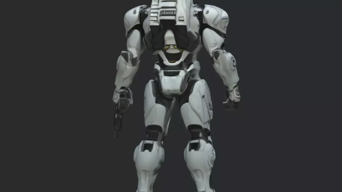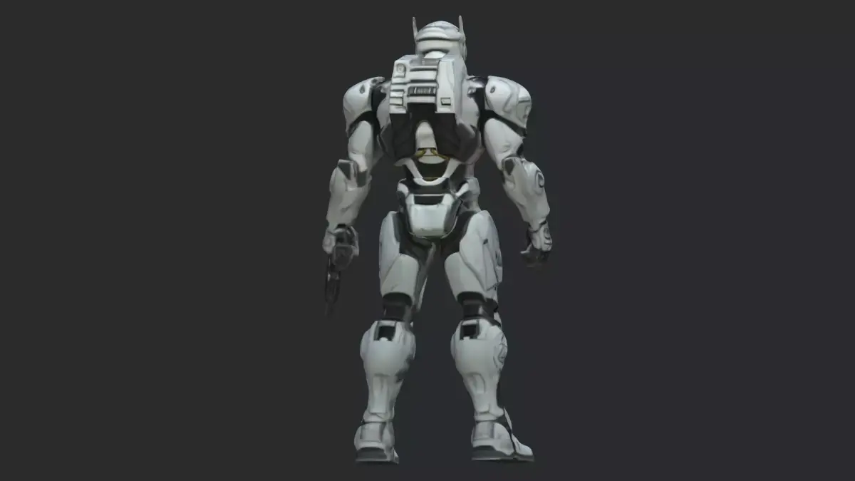 This 3D model showcases a futuristic sci-fi robot soldier designed with sleek armor plating, advanced mechanical details, and a weapon-ready stance. The character blends humanoid proportions with robotic enhancements, making it suitable for games, animation, VR/AR, and cinematic projects. The model features clean topology, unwrapped UVs, and optimized geometry for seamless integration into different workflows.