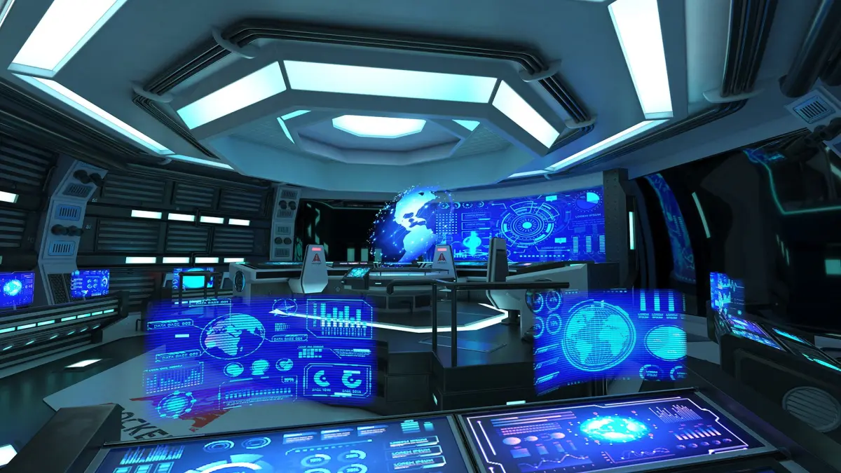 It typically features advanced technologies such as holographic displays, AI-powered systems, and augmented reality interfaces that enable commanders to monitor and control various aspects of the mission or operation.