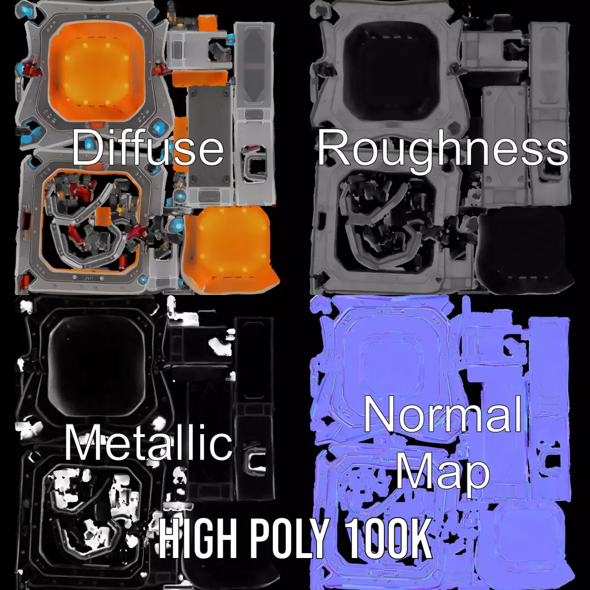 This futuristic sci-fi container model pack features a complex design with vibrant LED lights and metallic materials, making it perfect for high-tech scenes in games, films, or simulations. Each model has 3 levels of detail: low-poly (1000 triangles for mobile), middle-poly (10,000 triangles for environment), and high-poly (100,000 triangles), which allows for the use of this model in production rendering (such as 3ds Max, Maya, Cinema4D, Blender, Vray/Corona/Cycles and all others), game engines (Unity and Unreal compatible), and interactive presentations, providing a choice of detail based on the LOD System principle. Ideal for sci-fi settings, spaceship interiors, or as decorative elements in futuristic environments. The model's textures are PBR, Diffuse, NormalMap, and reflection/roughness/metallic, which are suitable for any modern rendering engine. All models are accurately unwrapped and have no overlapping UV. All textures are 4096*4096 in size. The first image is the reference used for creating the 3D model. It is important to carefully evaluate the quality of the model by examining the preview images that display the topology and polygonal mesh. These previews (WIRE and WEB 3D Preview) clearly demonstrate how accurately the model matches the original reference and how well the geometry has been executed. Please like and leave a comment for the model if you enjoy it.