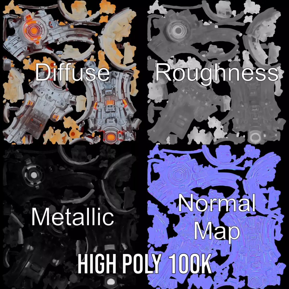 This futuristic sci-fi mechanical orb features intricate detailing and metallic textures, making it perfect for game environments, cinematic renders, and interactive experiences. Each model has 3 levels of detail: low-poly (1000 triangles for mobile), middle-poly (10,000 triangles for environment), and high-poly (100,000 triangles), which allows for the use of this model in production rendering (such as 3ds Max, Maya, Cinema4D, Blender, Vray/Corona/Cycles, and all others), game engines (Unity and Unreal compatible), and interactive presentations, providing a choice of detail based on the LOD system principle. Ideal for use in space scenes, sci-fi setups, and advanced robotics visualizations, this model offers high versatility across different platforms. The model's textures are PBR, Diffuse, NormalMap, and reflection/roughness/metallic, which are suitable for any modern rendering engine. All models are accurately unwrapped with no overlapping UVs. All textures are 4096*4096 in size. The first image is the reference used for creating the 3D model. It is important to carefully evaluate the quality of the model by examining the preview images that display the topology and polygonal mesh. These previews (WIRE and WEB 3D Preview) clearly demonstrate how accurately the model matches the original reference and how well the geometry has been executed. If you like the model, please leave a comment or give it a like!