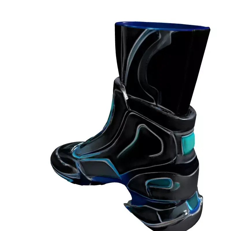 This is a meticulously crafted 3D model of a futuristic, sci-fi style combat boot, designed as a highly detailed component of advanced leg armor. The model boasts a sleek, aerodynamic aesthetic, combining reflective metallic surfaces with dark, resilient accents and striking emissive blue light details that enhance its cutting-edge design. It is perfectly suited for a wide array of digital projects, including immersive game development, high-fidelity AR/VR experiences, stunning cinematic renderings, and intricate digital art compositions. Furthermore, its robust design makes it an excellent candidate for detailed animation sequences or as a distinctive prop in futuristic architectural visualizations. The model is optimized for both real-time applications, ensuring smooth performance in game engines and interactive environments, and high-quality static renders where visual fidelity is paramount. Key features include clean, efficient topology, making it easy to integrate into various pipelines, and full UV unwrapping, providing a solid foundation for advanced PBR (Physically Based Rendering) texture sets. The emissive elements are carefully mapped to provide realistic glowing effects. It is provided in multiple industry-standard formats for maximum compatibility, including GLB, OBJ, FBX, STL, ABC, DAE, USD, and PLY, making it versatile for both rendering and potential 3D printing applications (with appropriate preparation).