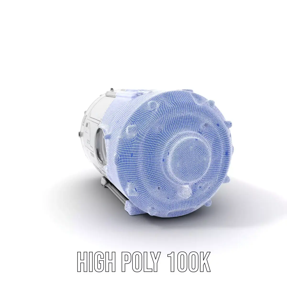 This futuristic sci-fi space capsule model pack features a highly detailed cylindrical design, ideal for space-themed games, animations, and simulations. Each model has 3 levels of detail: low-poly (1000 triangles for mobile), middle-poly (10,000 triangles for environment), and high-poly (100,000 triangles), which allows for the use of this model in production rendering (such as 3ds Max, Maya, Cinema 4D, Blender, V-Ray/Corona/Cycles, and all others), game engines (Unity and Unreal compatible), and interactive presentations, providing a choice of detail based on the LOD System principle. Its sleek metallic surface, illuminated control panels, and intricate detailing make it perfect for high-tech scenarios and futuristic settings. The model's textures are PBR, Diffuse, NormalMap, and reflection/roughness/metallic, which are suitable for any modern rendering engine. All models are accurately unwrapped with no overlapping UVs. All textures are 4096x4096 in size. The first image is the reference used for creating the 3D model. It is important to carefully evaluate the quality of the model by examining the preview images that display the topology and polygonal mesh. These previews (WIRE and WEB 3D Preview) clearly demonstrate how accurately the model matches the original reference and how well the geometry has been executed. Please like and leave a comment for the model if you enjoyed it.