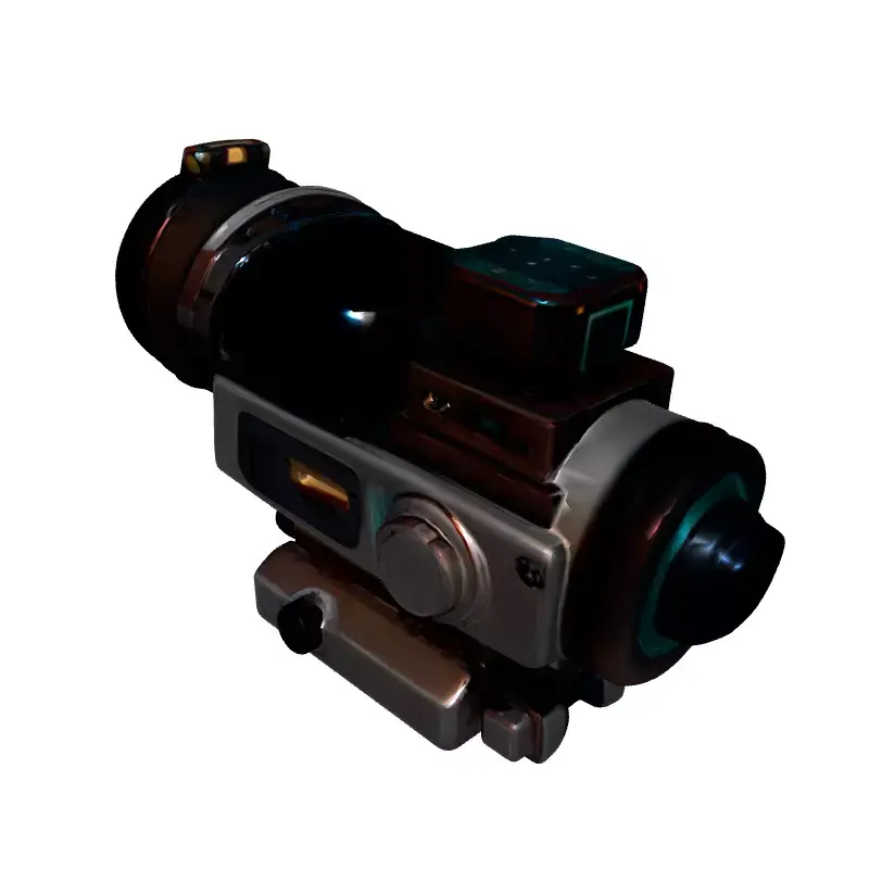 This is a highly detailed 3D model of a futuristic sci-fi scope, designed with a sleek, advanced aesthetic perfect for next-generation virtual environments. The model features intricate hard-surface detailing, glowing energy accents in vibrant blue and orange, and a transparent housing revealing complex internal technological components, giving it a high-tech, functional appearance. It's an ideal asset for various creative projects, including first-person shooter (FPS) games, role-playing games (RPGs), virtual reality (VR) and augmented reality (AR) experiences, sci-fi animations, and digital concept art. The asset is meticulously crafted with clean, optimized topology, making it suitable for real-time applications while also retaining sufficient detail for high-quality renders and cinematics. It comes fully UV unwrapped with PBR (Physically Based Rendering) textures, ensuring realistic material properties under various lighting conditions, including metallic sheens, glowing emissives, and transparent surfaces. The model is versatile and can be readily integrated into diverse workflows, supporting popular 3D file formats such as GLB, OBJ, FBX, USD, DAE, ABC, and PLY. Its robust design and visual appeal make it a standout component for any sci-fi weapon, gadget, or machinery, enhancing immersion and visual fidelity. This model is engineered for performance and visual excellence, ready to be dropped into your scenes and elevate your project's aesthetic.
