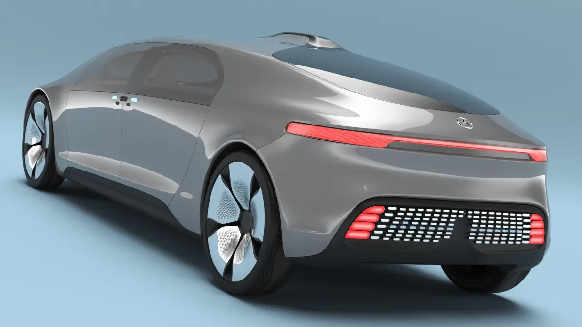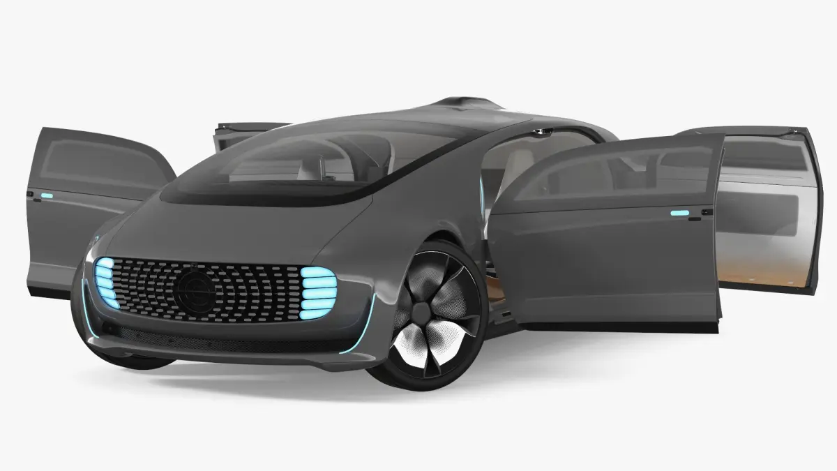Futuristic Self Driving Concept Car Silver Rigged is a 3d model of a cutting-edge autonomous vehicle showcasing advanced design and technology.