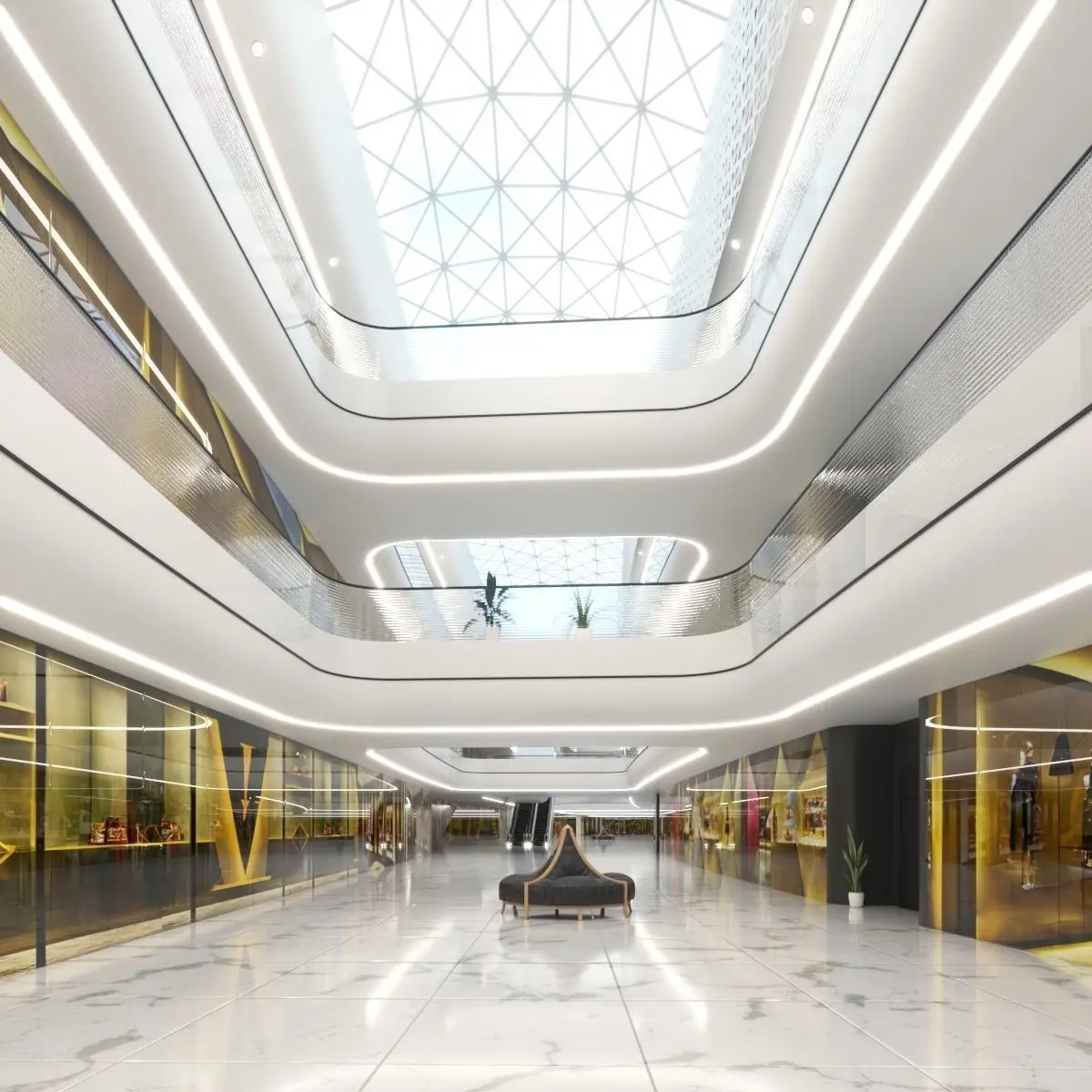 Futuristic Shopping Center 03 interior scene. High quality, and photo realistic 3D model. This models was originally modeled in 3ds Max 2019 and rendered with Vray.