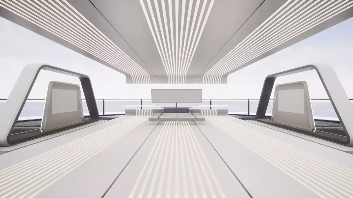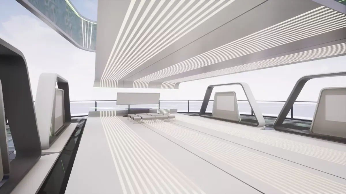 he Futuristic Sky Hallis a high-quality 3D environment designed with sleek sci-fi architecture and minimalistic elegance.Floating above the clouds, this platform features transparent glass floors, luminous pathways, and holographic rings that create a futuristic ambiance.