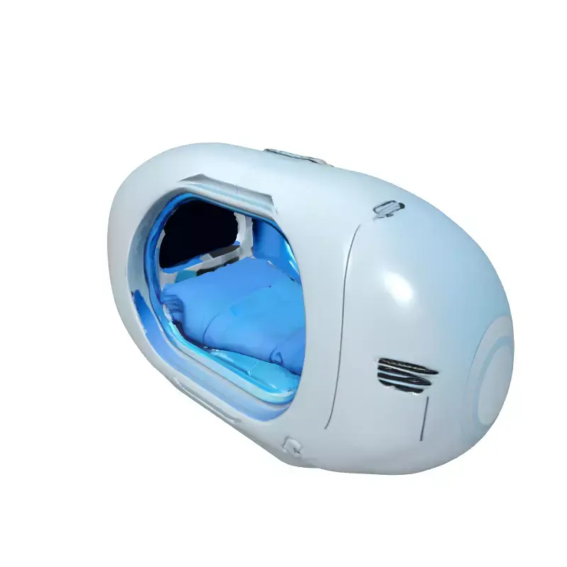 This is a meticulously crafted 3D model of a futuristic sleep pod capsule, designed with a sleek, minimalist aesthetic. The model features a smooth, white exterior shell encapsulating a comfortable blue-lit interior, complete with a mattress and pillow, suggesting advanced comfort and relaxation. Its contemporary design makes it an ideal asset for various applications, including sci-fi game environments, virtual reality experiences, and augmented reality projects where modern or futuristic elements are required. The clean lines and glowing accents also make it perfect for architectural visualizations of advanced homes, luxury hotels, or scientific research facilities. Artists and designers can integrate this model into their digital art compositions or use it for concept designs in various media. The model boasts clean topology, allowing for smooth subdivision and easy integration into any scene, ensuring high-quality renders and optimal performance. It is fully UV unwrapped for efficient texture application and is compatible with PBR (Physically Based Rendering) workflows, ensuring realistic material representation. This model is optimized for real-time applications such as games and AR/VR, while also being perfectly suitable for high-fidelity static renderings and cinematic scenes. Potential file formats include GLB, OBJ, STL, ABC, DAE, FBX, USD, and PLY, providing broad compatibility across different 3D software and engines. Whether for real-time applications or high-fidelity static renders, this sleep pod delivers both aesthetic appeal and technical robustness.