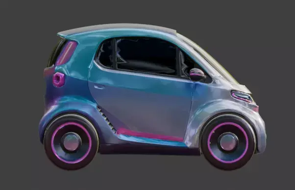 Tagsfuturistic, smart car, city car, pixar style, stylized, neon, electric vehicle, urban transport, 3d model, game asset, scifi, iridescent, minimal, compact