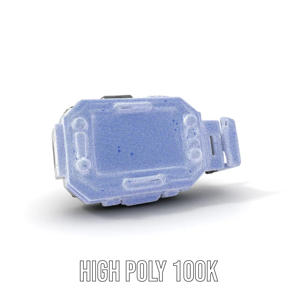 This 3D model pack features a futuristic smartwatch equipped with a robust, detailed display and intricate strap design. Each model has 3 levels of detail: low-poly (1000 triangles for mobile), middle-poly (10,000 triangles for environment), and high-poly (100,000 triangles), which allows for the use of this model in production rendering (such as 3ds Max, Maya, Cinema4D, Blender, Vray/Corona/Cycles, and all others), game engines (Unity and Unreal compatible), and interactive presentations, providing a choice of detail based on the LOD System principle. Perfect for use in sci-fi projects, animations, virtual reality applications, and product design mockups. The model's textures are PBR, Diffuse, NormalMap, and reflection/roughness/metallic, which are suitable for any modern rendering engine. All models accurately unwrapped and has no overlapping UV. All textures are 4096*4096 in size. The first image is the reference used for creating the 3D model. It is important to carefully evaluate the quality of the model by examining the preview images that display the topology and polygonal mesh. These previews (WIRE and WEB 3D Preview) clearly demonstrate how accurately the model matches the original reference and how well the geometry has been executed. Please like and leave a comment for the model if you enjoyed it.