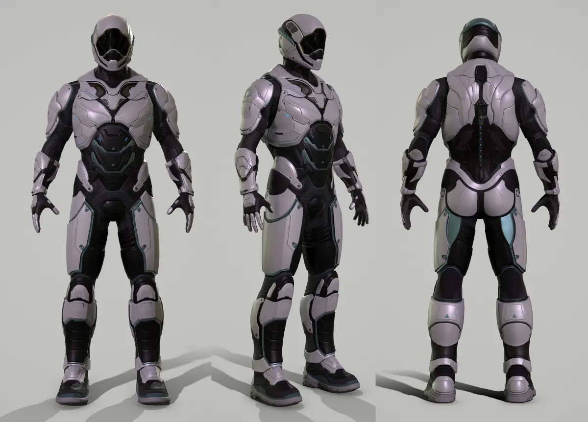 Futuristic Soldier Sci-fiAAA qualityTextures at 4096x4096Files in FBX/OBJincluded mesh UDIM formatPreview included in MarmosetID map included for generating new materialsEven Unreal texturesmodel in four different colorsverts 10,013triangles 18,794Normal map, rough, metallic, ao, emissive, opacity textures