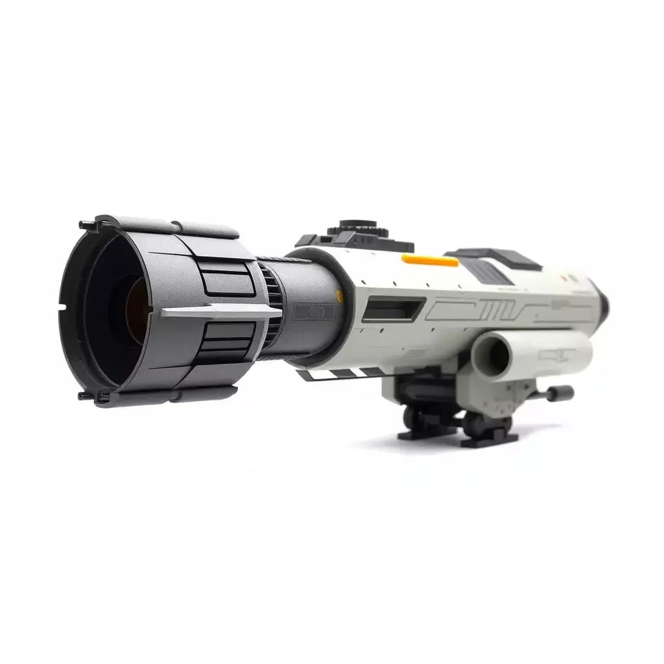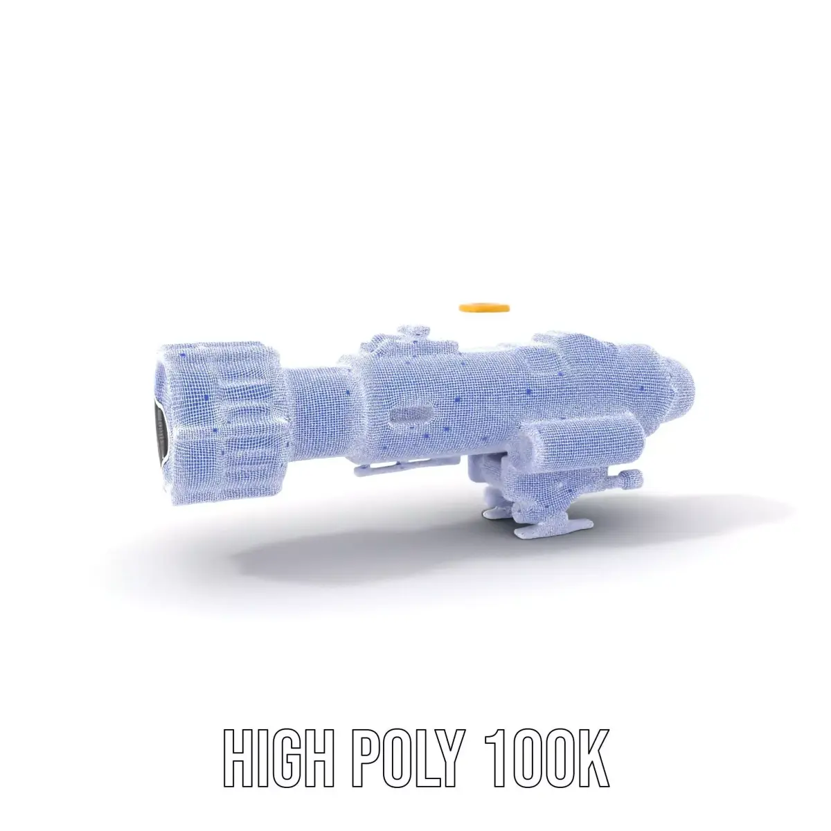 Explore the universe with this Futuristic Space Blaster model pack, designed for sci-fi enthusiasts and game developers. This stunning model features sleek and modern design elements, ideal for space-themed projects. The first image is the reference used for creating the 3D model.