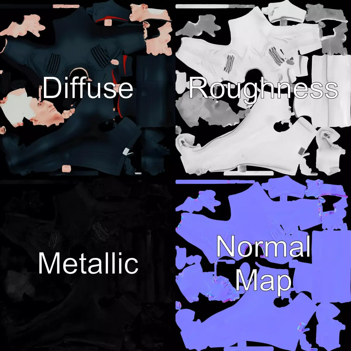 Explore the cosmos with our Futuristic Space Commander model pack. This character model, featuring a sleek black and red uniform, is ideal for sci-fi games, animations, and virtual presentations. Each model has 3 levels of detail: low-poly(1000 triangles for mobile), middle-poly(10 000 triangles for environment), and high-poly(100 000 triangles), which allows for the use of this model in production rendering (such as 3ds max, Maya, Cinema4d, Blender, Vray/Corona/Cycles and all others), game engines (Unity and Unreal compatible), and interactive presentations, providing a choice of detail based on the LOD System principle. The model's textures are PBR, Diffuse, NormalMap, and reflection/roughness/metallic, suitable for any modern rendering engine. All models accurately unwrapped and have no overlapping UV. All textures are 4096*4096 in size. Perfect for intergalactic adventures, military strategy simulations, or futuristic storytelling, its detailed textures and dynamic design offer versatility in use. If you find this model useful, please like and leave a comment.
