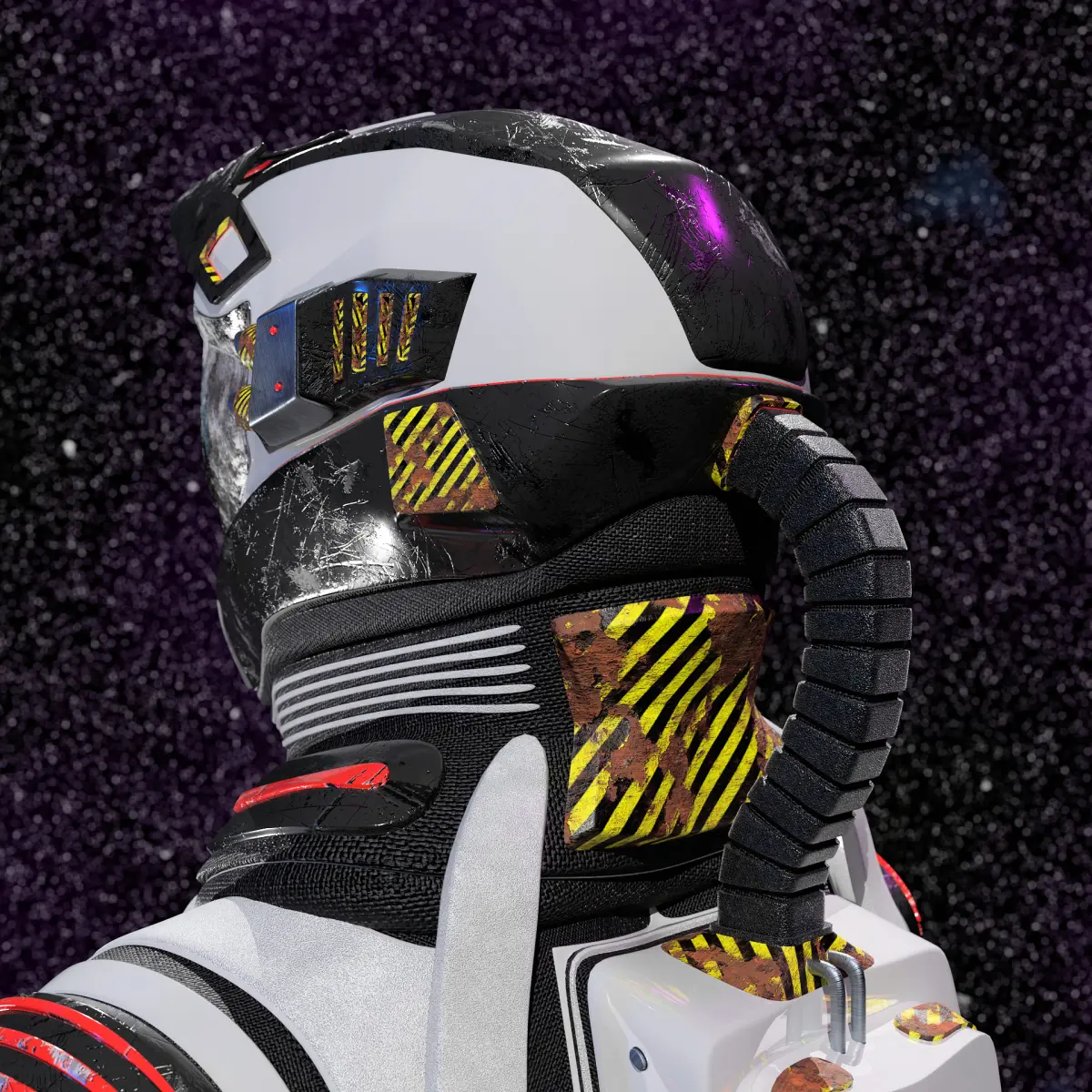 Aerodynamic and Modular Design: Reflecting the high-speed, high-impact nature of MX gear, the space suit features aerodynamic contours for mobility and speed, along with modular components that can be adapted or removed depending on the mission requirements.