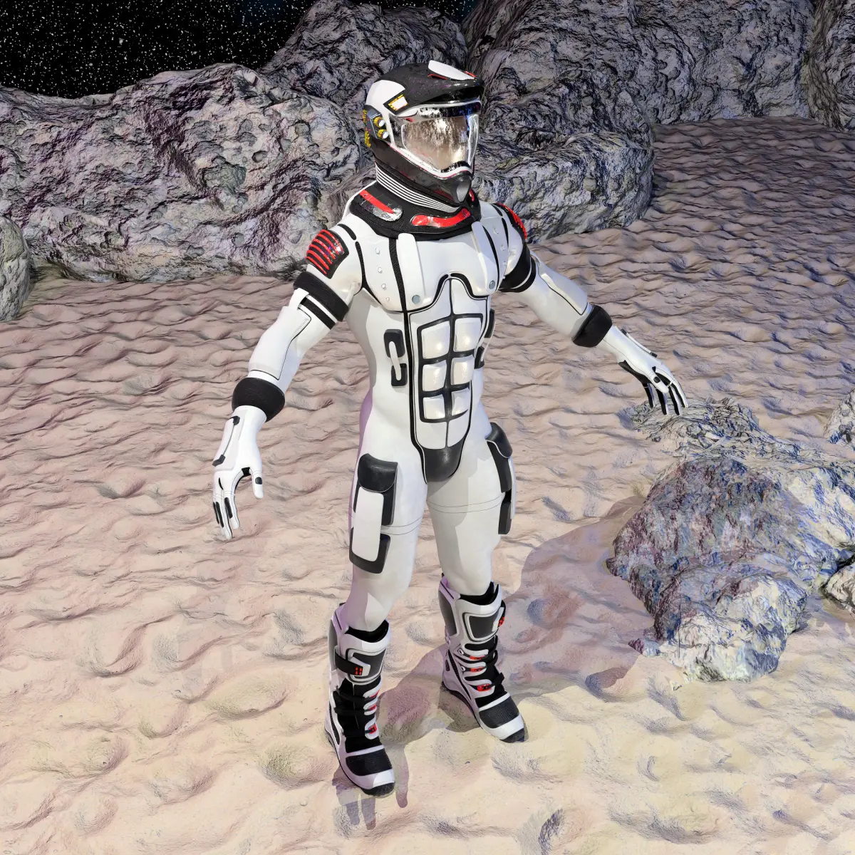 Embark on interstellar adventures with this meticulously designed Space Ranger Suit, inspired by the dynamic and rugged style of motocross (MX) clothing. This 3D model combines the practicality of extreme sports attire with cutting-edge technology, making it perfect for visualizing the future of space exploration and adventure.
