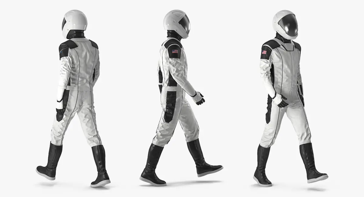 Futuristic Space Suit fully rigged with bones and skin system in Maya 2012. You can easily position it the way you need or animate.The mouth can be opened.See the renders to get an idea of how animation works.