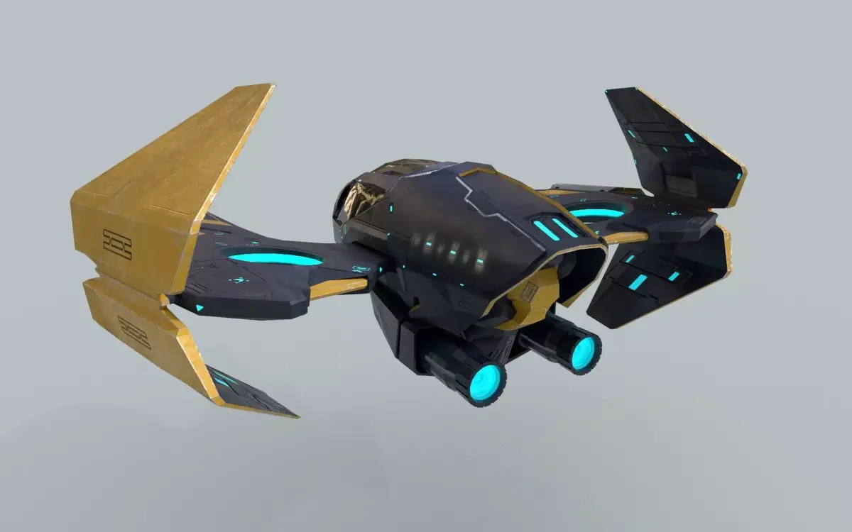 "This is a high-quality sci-fi spaceship 3D model, designed in Maya and textured in Substance Painter. The model features four detailed engines and four laser weapons, making it suitable for games, animations, and visualizations.