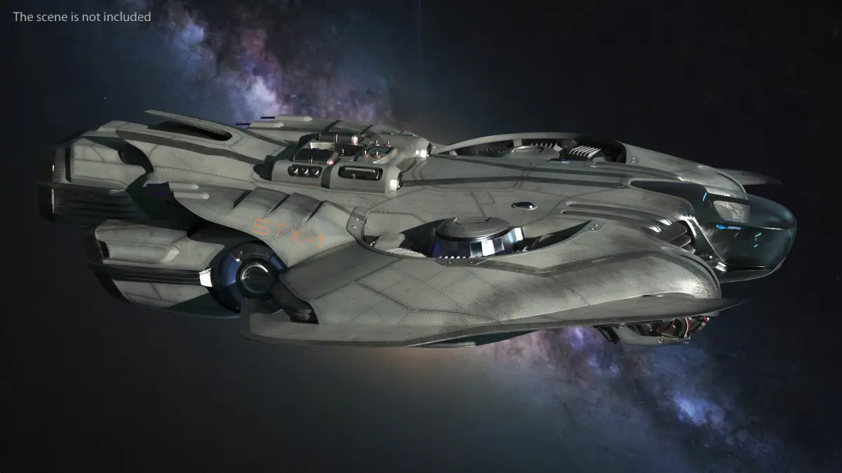This advanced spacecraft features sleek, aerodynamic lines and robust construction to withstand the rigors of space travel. Equipped with powerful engines and state-of-the-art technology, it offers efficient navigation and speed. The design includes a spacious interior with a cargo bay, adaptable for various missions and crew requirements.