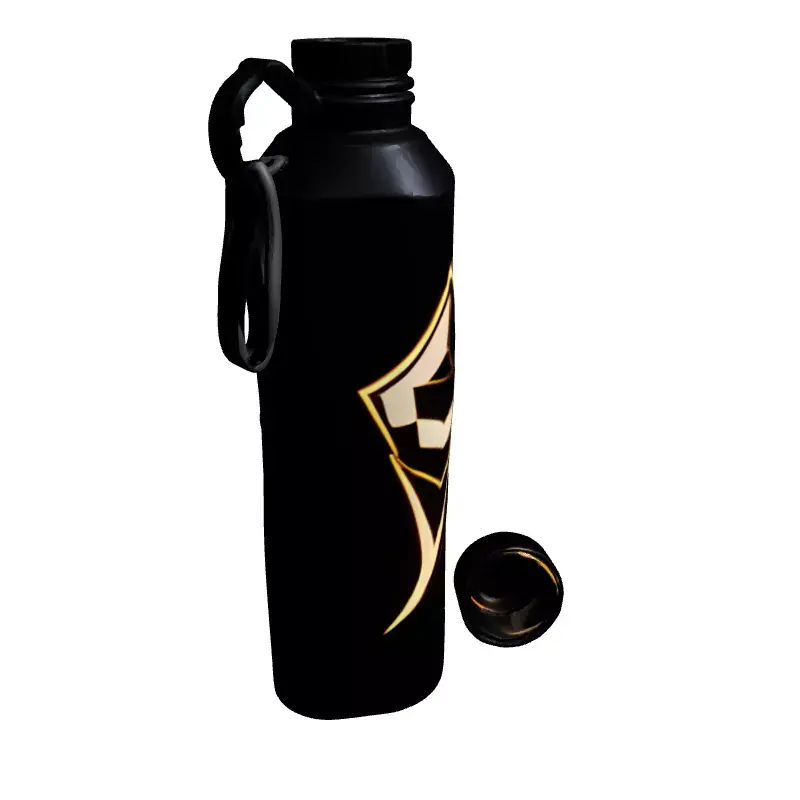 This is a highly detailed 3D model of a modern and futuristic sports water bottle, featuring a distinct black matte finish and an eye-catching glowing orange emblem. The design is sleek and ergonomic, making it ideal for a variety of digital projects. This model is meticulously crafted with clean topology, ensuring smooth surfaces and easy integration into any scene. It is fully UV unwrapped with PBR-ready textures to provide realistic material representation, including the striking emissive glow of the logo. The bottle comes complete with a detachable lid and a convenient carabiner loop, enhancing its realism and versatility. Optimized for real-time applications, this asset is perfect for game development, particularly for sci-fi, cyberpunk, or sports-themed environments, serving as an engaging prop or interactive item. It is also well-suited for augmented reality (AR) and virtual reality (VR) experiences, product visualization, and high-quality static renderings in architectural visualization or digital art projects. The model is prepared for use in various engines and renderers, ensuring consistent visual fidelity. Supported file formats typically include GLB, OBJ, FBX, USD, and potentially DAE, ABC, STL, and PLY for broad compatibility. Its detailed yet efficient geometry allows for smooth performance without compromising visual quality, making it a versatile addition to any 3D artist's library.