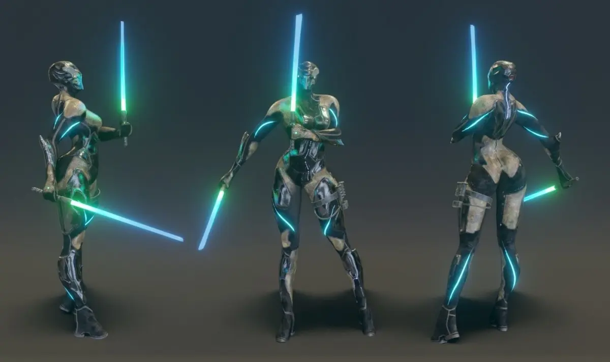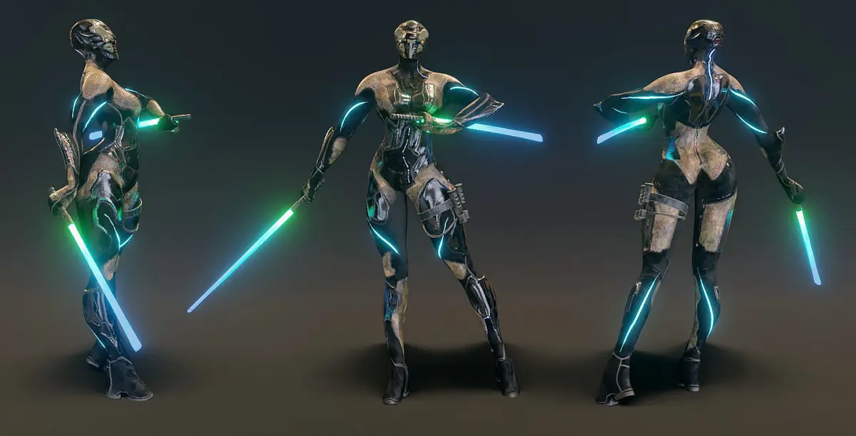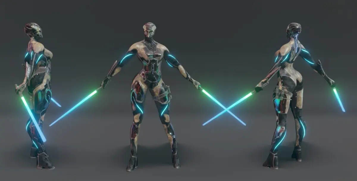 Texture2 Materials all in 4k (4096x4096) with no overlapping UVs. perfectly packed: 1- Body Material2- Sabers + SheathBoth contain: