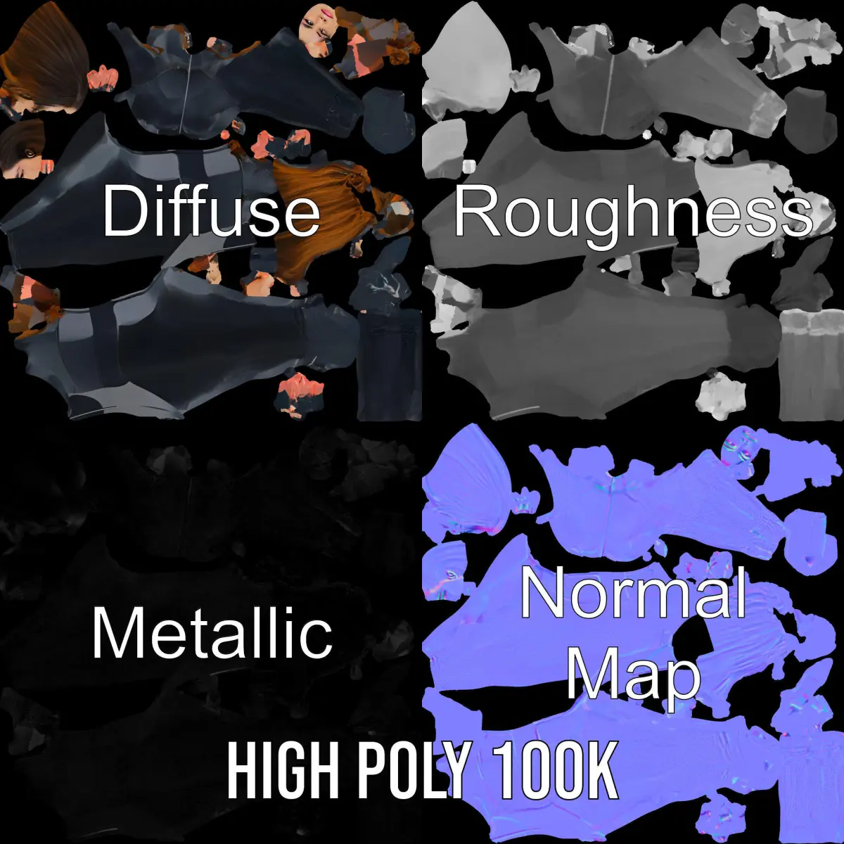 Included animation of Idle, Walking, Running etc. It's full compatible with Mixamo RIG. This character model comes in 3 levels of detail: low-poly for mobile games, mid-poly for standard games, and high-poly for cinematics. The model is fully rigged and ready for animation. It includes PBR textures (4096x4096), including diffuse, normal maps, and metallic/roughness maps. The character is provided in T-pose and can be easily imported into any modern game engine or 3D software. Perfect for games, animations, or virtual reality applications. Please like and comment if you find this model useful!