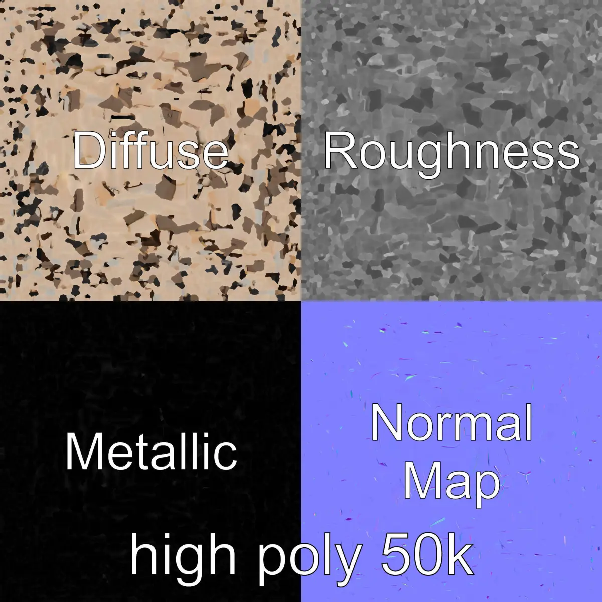 The model's textures are PBR, Diffuse, NormalMap, and reflection/roughness/metallic, which are suitable for any modern rendering engine. All models are accurately unwrapped and have no overlapping UV. Textures are 4096*4096 in size.