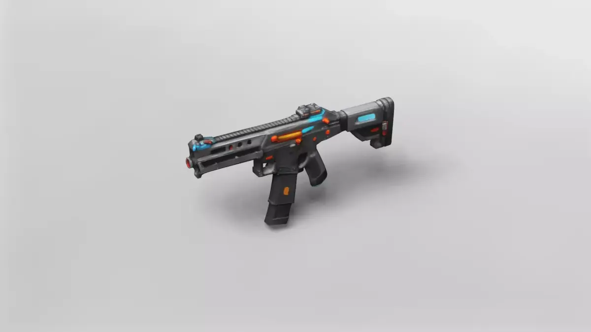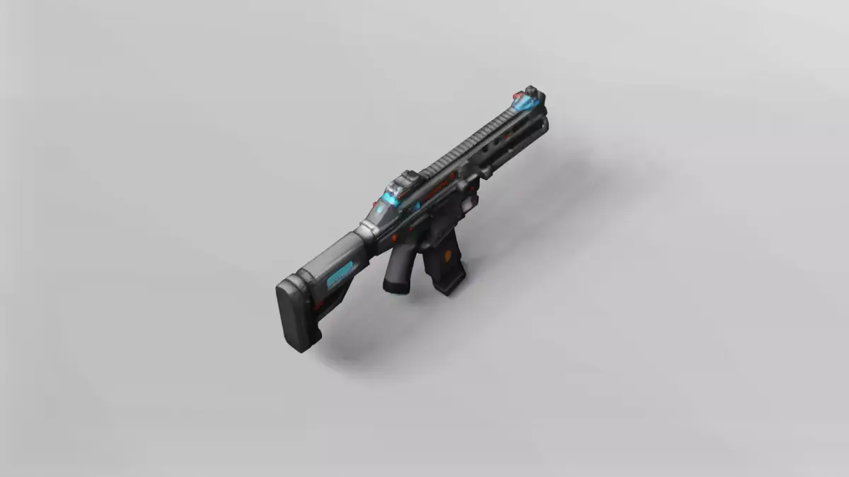 This highly detailed 3D model represents a futuristic tactical submachine gun, designed with a sleek and modern aesthetic. The model features intricate mechanical components, including a detailed barrel, magazine, and adjustable stock, all rendered with precision to capture the essence of advanced weaponry. The design incorporates vibrant accents in blue and orange, adding a dynamic and high-tech feel to the overall appearance.The model is fully textured, with high-quality materials that emphasize the metallic surfaces, grip textures, and illuminated elements. These textures are included with the download, ensuring that the model looks realistic and ready for use in any 3D environment or game engine. The attention to detail extends to small features such as screws, vents, and rail systems, making it suitable for close-up renders and animations.Available for download in the .gmb format, this model is optimized for compatibility with various 3D software platforms that support this format. Additionally, it is offered in the widely-used .fbx format, providing flexibility for integration into game development, virtual reality projects, and other digital media applications. Both formats include the complete texture set, allowing for seamless use without additional setup.Whether you are a game developer, 3D artist, or hobbyist, this futuristic tactical submachine gun model is an excellent asset for enhancing your projects. Its combination of detailed geometry, realistic textures, and versatile file formats makes it a valuable addition to any digital weapon collection or sci-fi themed environment.
