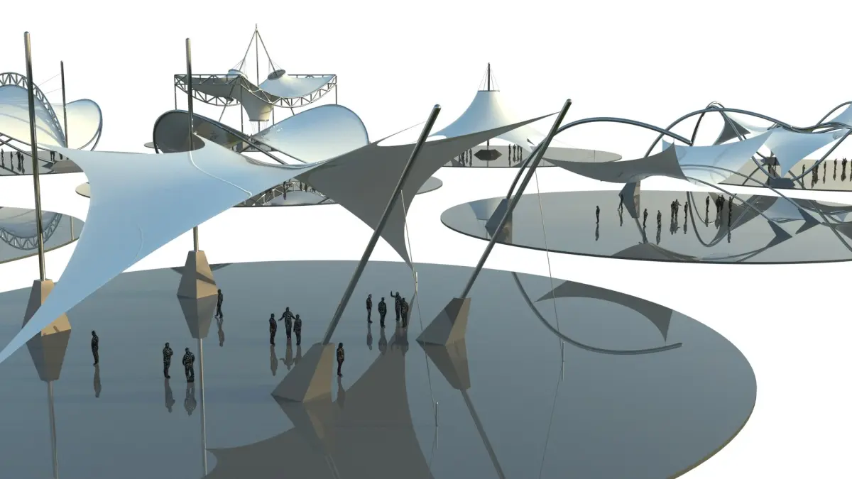 - Parametric-inspired tensile structure, perfect for exhibitions, pavilions, or futuristic urban settings