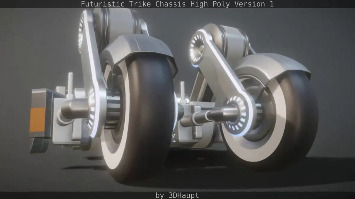 Here is a futuristic trike chassis (High Poly Version 1) out of my vehicle construction set (coming soon). Demo video in Blender: https://www.youtube.com/watch?v=BW2FsIrPx6g