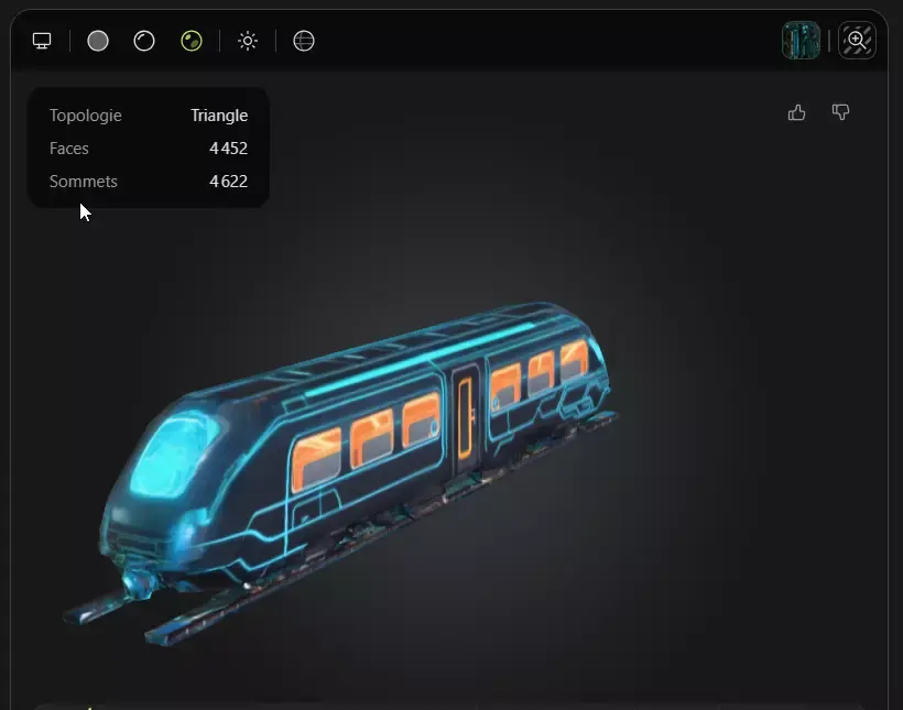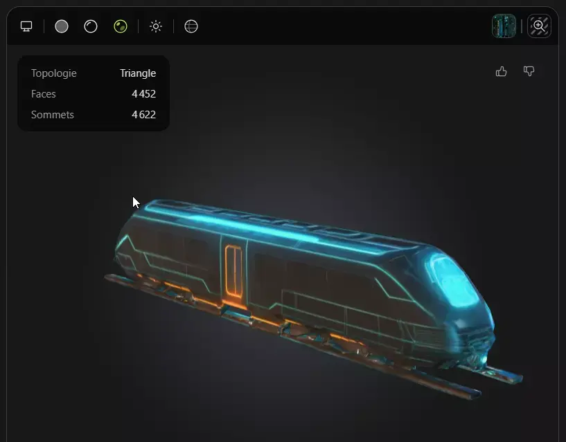 This is a futuristic train model inspired by the Tron visual aesthetic, featuring glowing neon lines and a stylized sci-fi design.The mesh has been fully optimized to deliver excellent performance for real-time applications while maintaining strong visual appeal.
