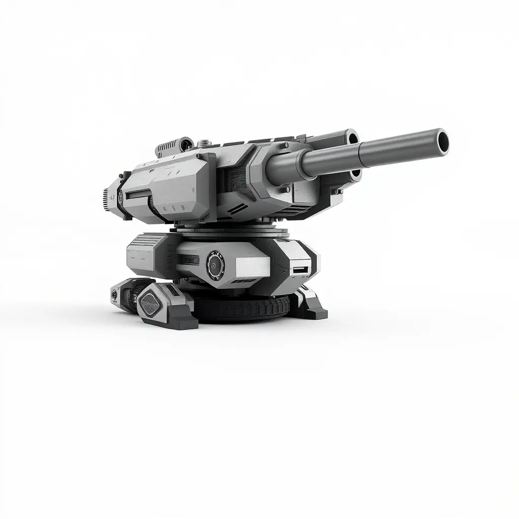 This 3D model pack features a highly detailed futuristic turret gun. The model is crafted with three levels of detail: