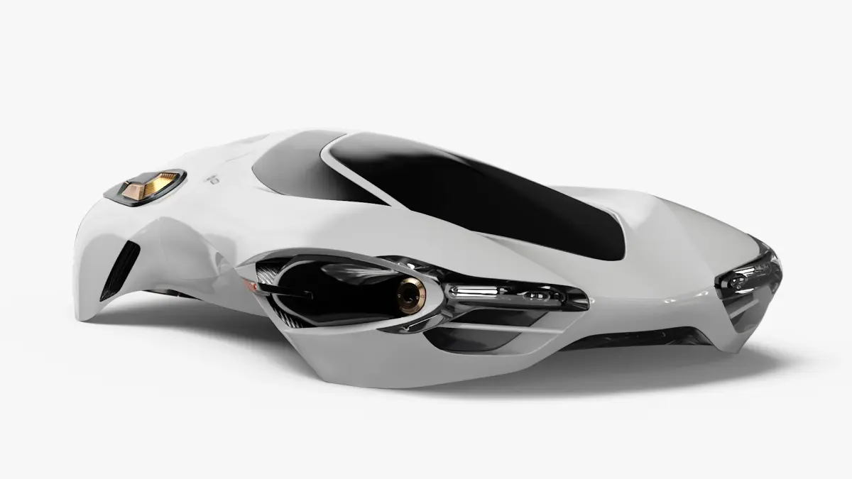 Futuristic Urban Flying Vehicle White is a three-dimensional model of futuristic urban flying car, that is depicted as a sci-fi flying vehicle designed for efficient and advanced transportation in densely populated cities.