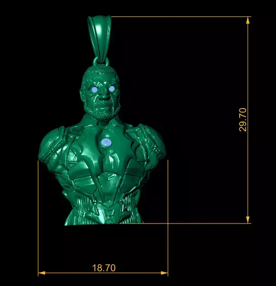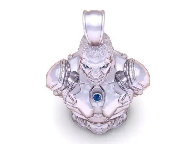 This Futuristic Armored Warrior Bust Pendant is a highly detailed 3D jewelry model crafted with precision and artistic depth. The design features a heroic, cyber-enhanced warrior with a sculpted armored torso, sharp mechanical detailing, and a realistic face rendered with fine craftsmanship.
