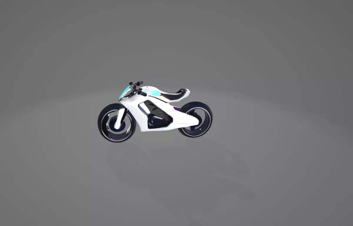 A sleek and modern white motorcycle with a futuristic design, featuring smooth curves and glowing accents.