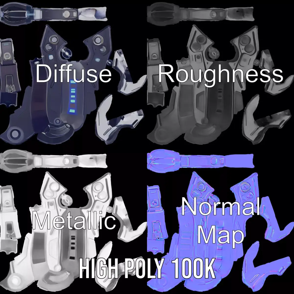 This 3D model pack features a high-tech futuristic wrench tool with built-in LED indicators, combining modern design with functionality. Each model has 3 levels of detail: low-poly (1000 triangles for mobile), middle-poly (10,000 triangles for environment), and high-poly (100,000 triangles), which allows for the use of this model in production rendering (such as 3ds max, Maya, Cinema4D, Blender, Vray/Corona/Cycles, and all others), game engines (Unity and Unreal compatible), and interactive presentations, providing a choice of detail based on the LOD system principle. Ideal for use in sci-fi scenes, tool design visualizations, and educational demonstrations. The model's textures are PBR, Diffuse, NormalMap, and reflection/roughness/metallic, which are suitable for any modern rendering engine. All models accurately unwrapped and have no overlapping UV. All textures are 4096*4096 in size. The first image is the reference used for creating the 3D model. It is important to carefully evaluate the quality of the model by examining the preview images that display the topology and polygonal mesh. These previews (WIRE and WEB 3D Preview) clearly demonstrate how accurately the model matches the original reference and how well the geometry has been executed. Please like and leave a comment for the model if you enjoyed it.