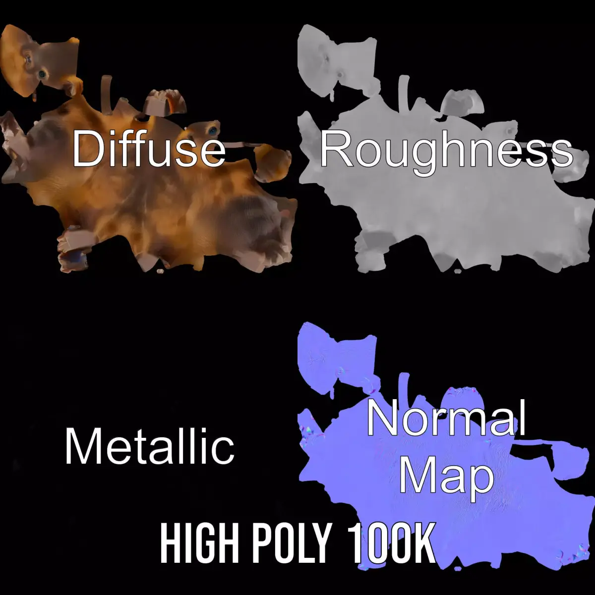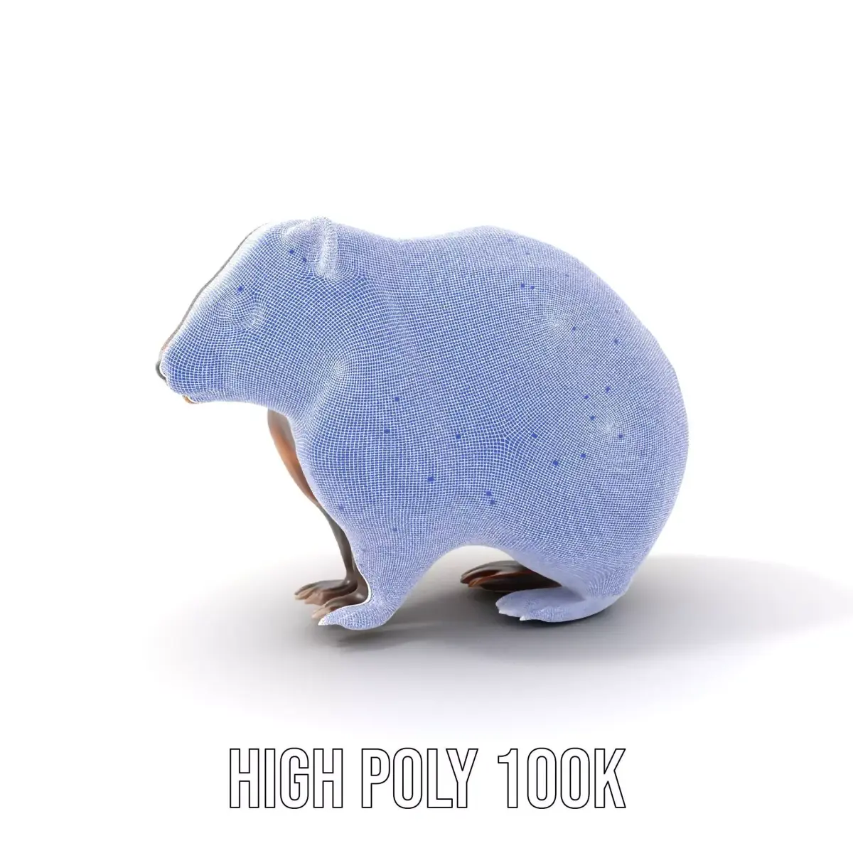 The Fuzzy Wombat Critter model pack features a highly detailed 3D model of a wombat, designed to bring lifelike nuances to any project. Each model has 3 levels of detail: low-poly (1000 triangles for mobile), middle-poly (10,000 triangles for environment), and high-poly (100,000 triangles), which allows for the use of this model in production rendering (such as 3ds Max, Maya, Cinema4D, Blender, Vray/Corona/Cycles and all other), game engines (Unity and Unreal compatible), and interactive presentations, providing a choice of detail based on the LOD System principle. This model is perfect for educational content, wildlife simulations, or creative animations. The model's textures are PBR, Diffuse, NormalMap, and reflection/roughness/metallic, which are suitable for any modern rendering engine. All models accurately unwrapped and have no overlapping UV. All textures are 4096*4096 in size. If you enjoyed this model, please like and leave a comment!