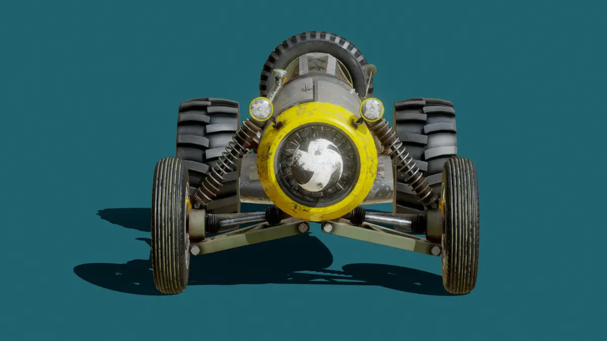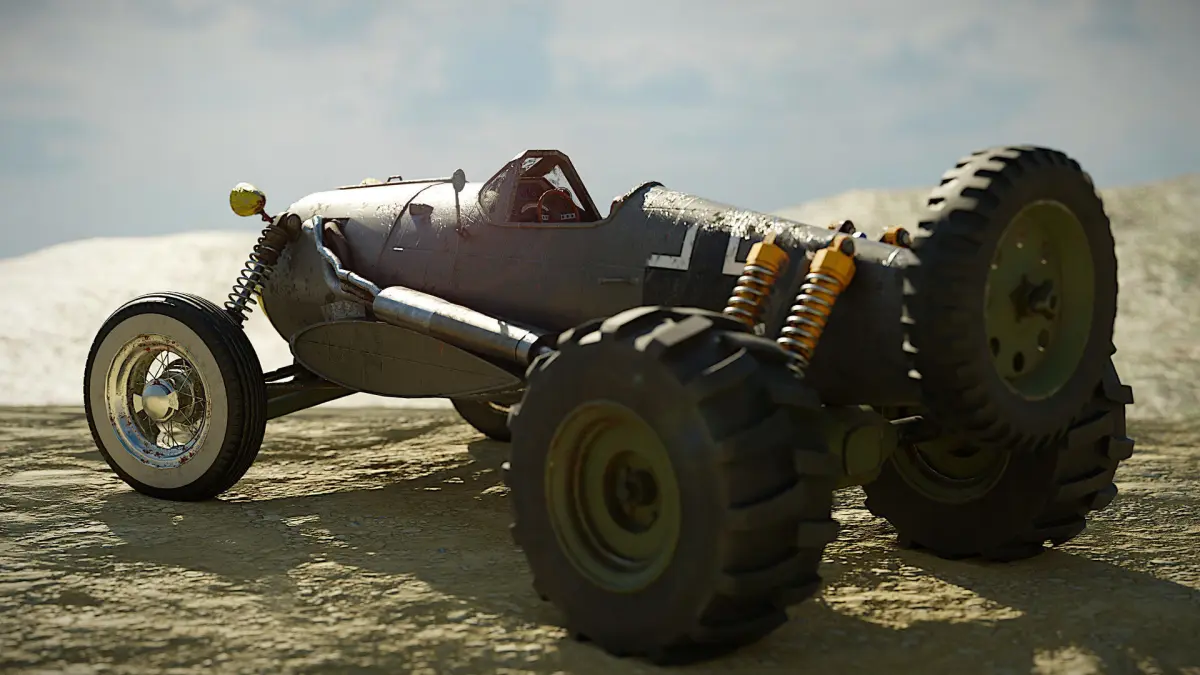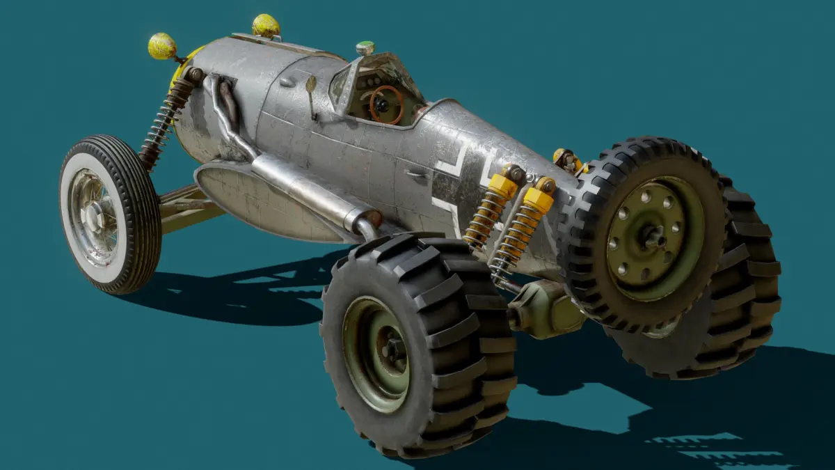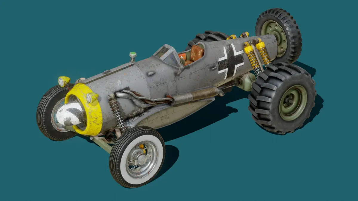 This is a Focke-Wulf Fw 190 German WW2 airplane turned into an off-road car. The model is mid-high poly with 250k Tris, Modeled in Blender and rendered using Cycles, has 14 materials with PBR textures made in Substance Painter, 4k for the main body and 2k for other, smaller parts.