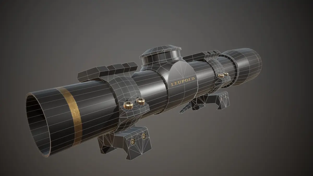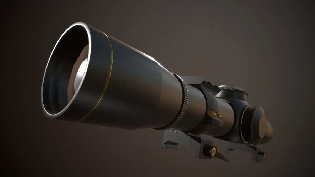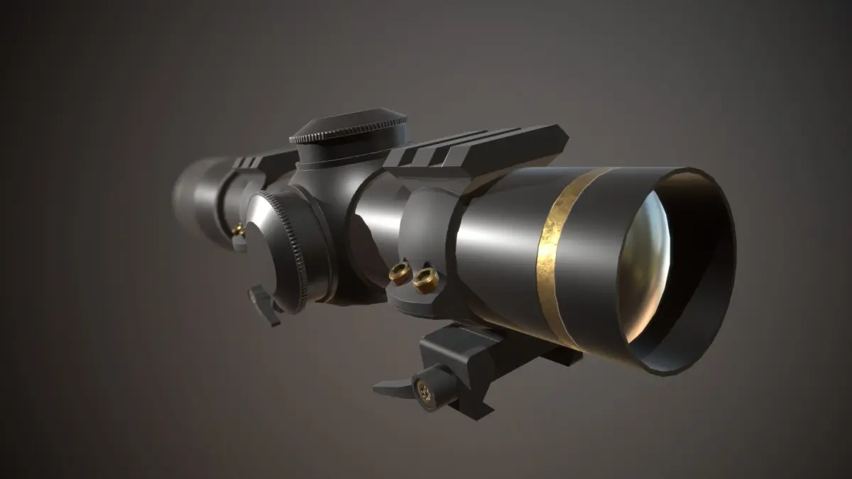 A short little 2.5x scope useful for low caliber rifles and hunting revolvers. Two materials, one for the scope and one for the lenses, also packaged with an alpha for the crosshairs.