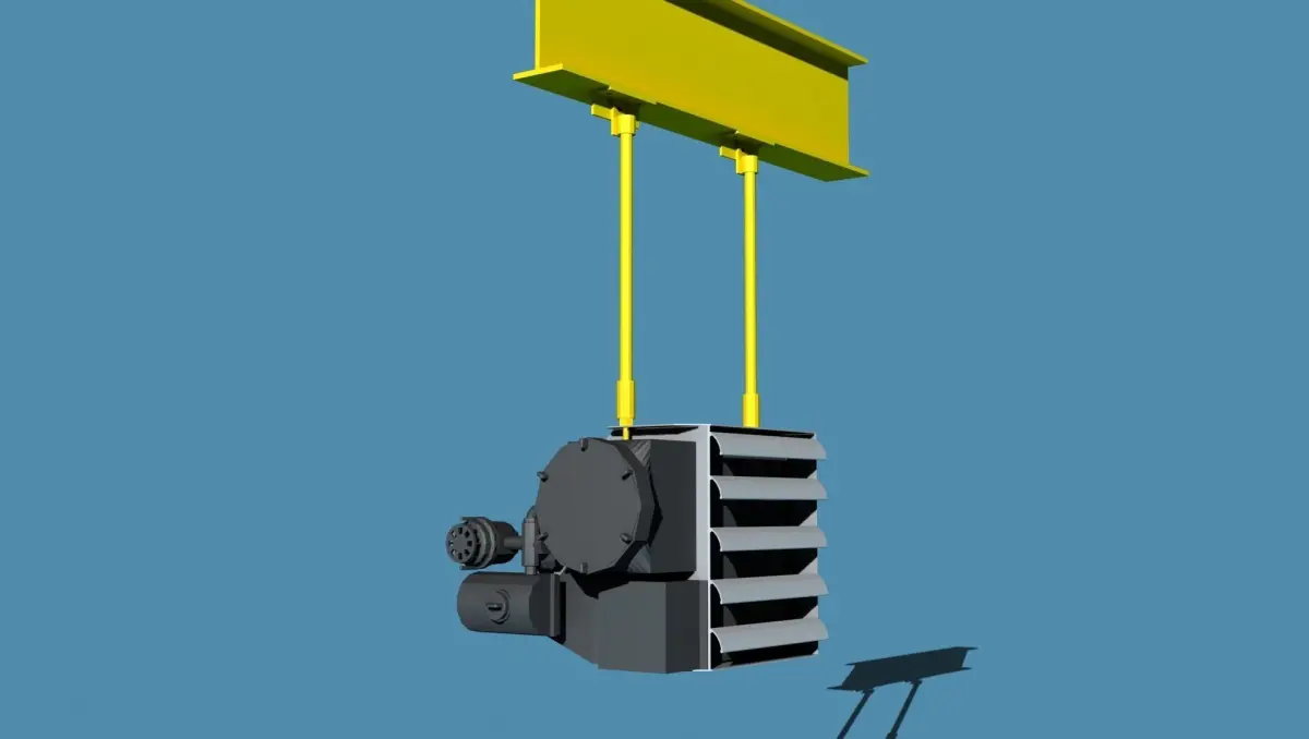 This model is a scale model of an industrial heater model FX16 either stand alone, ceiling mounted, wall mounted. These heaters are common in extreme cold environments such as work sites open to winter air or environment in exposed situations. These heaters are also used near front doors and other openings (entries and exits) where large doors or garage and loading platforms open to exterior cold environments. They are usually mounted to walls or ceilings. This model product includes all options of standalone (so you can add your own mounting) or wall mounted or ceiling mounted. This model is extremely detailed and is ready for your use in an engineering design. Model is built to us standard dimensions and is scale. The model was originally built in AutoCAD version 2004 and is available here in AutoCAD, 3ds, dxf, and 3ds Max.