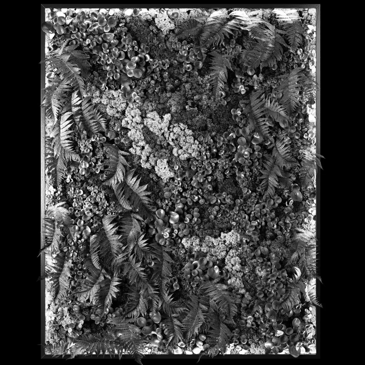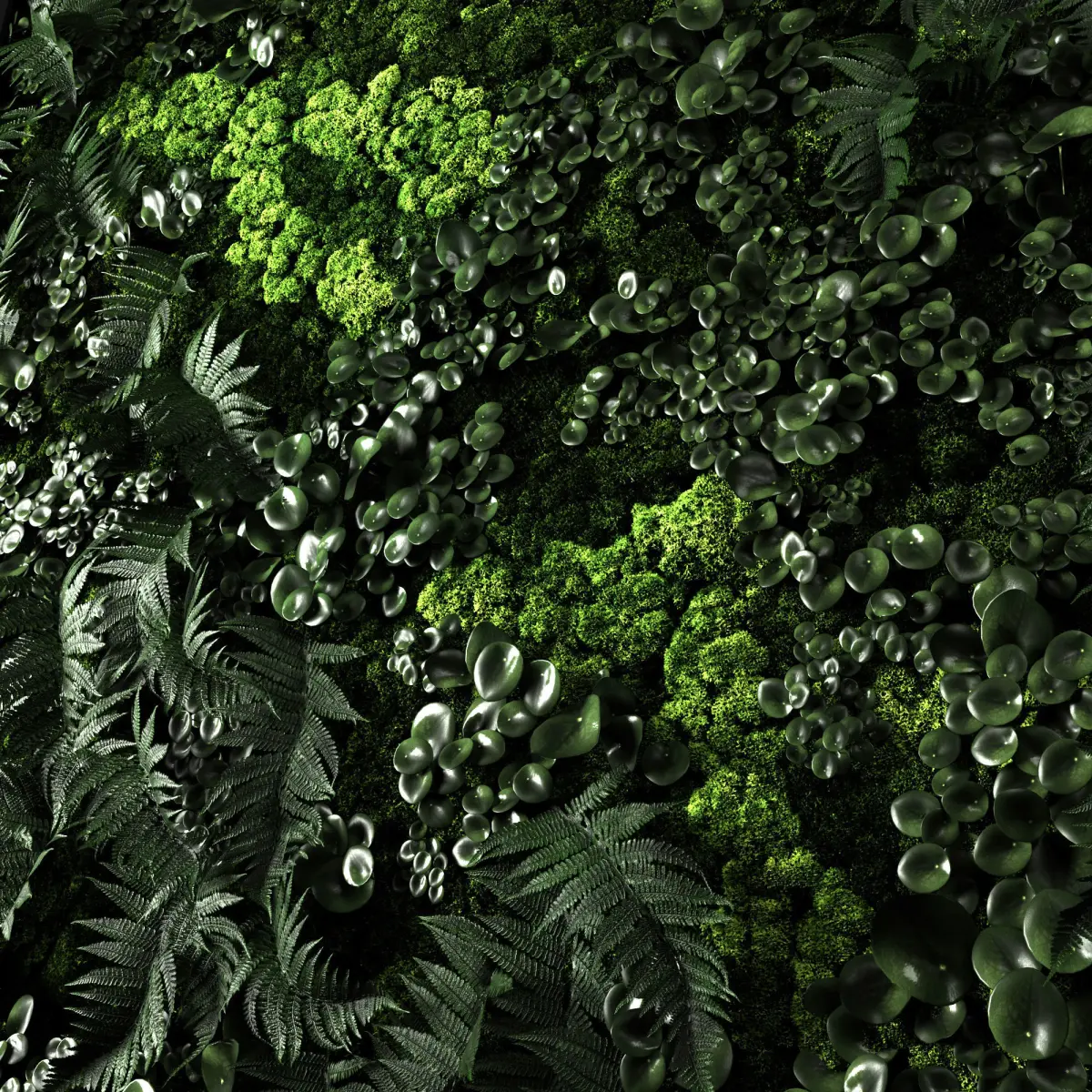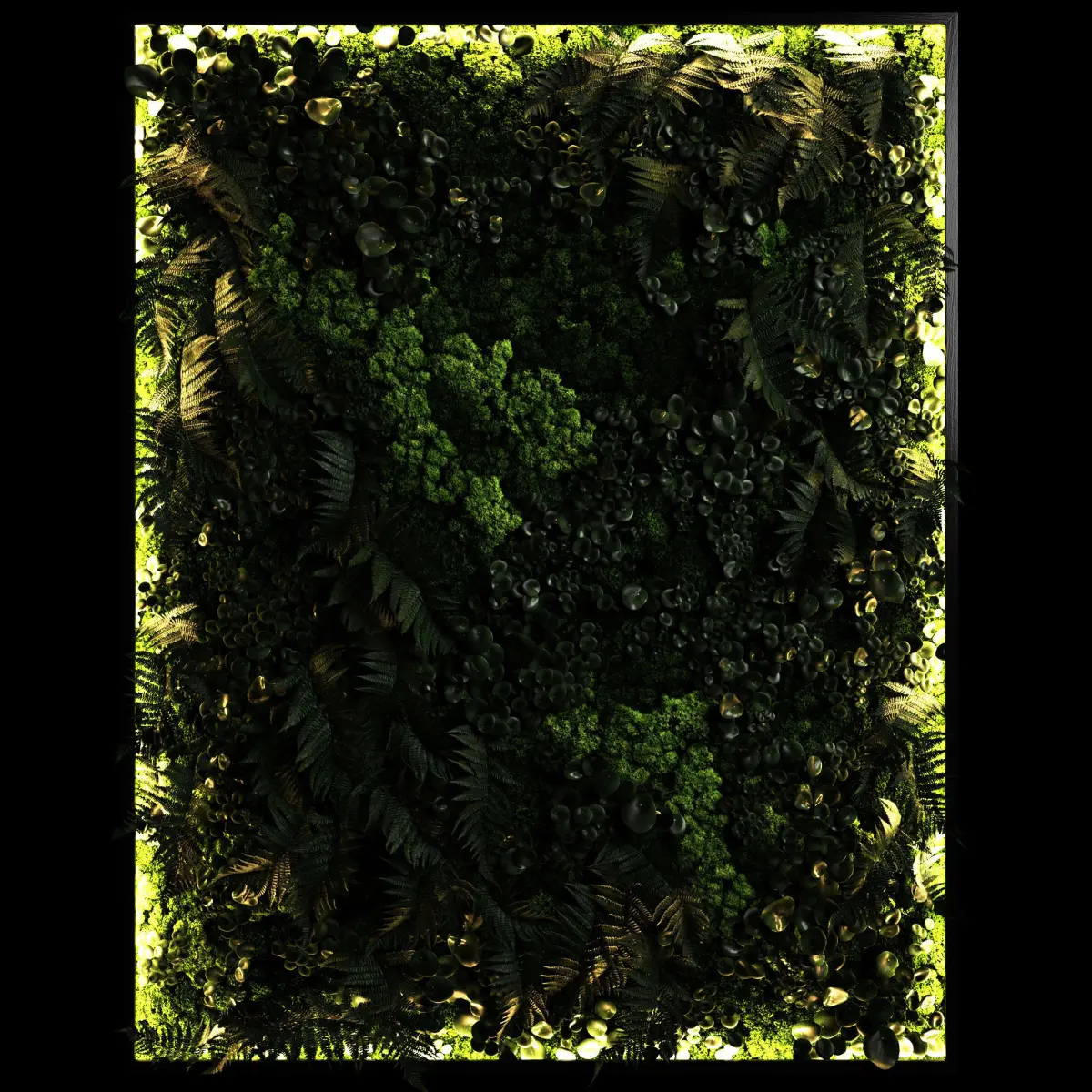 Phytowall with LED backlight. Ingredients: moss, fern, peperomia.