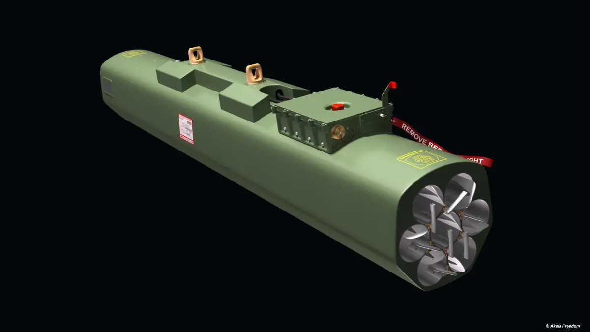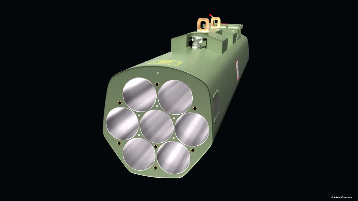 FZ233 is a lightweight 7-tube reusable rocket launcher designed for helicopter use.The FZ233 is equipped with a LIU interface (Launcher Interface Unit) for use the FZ275 LGR (Laser Guided Rocket).