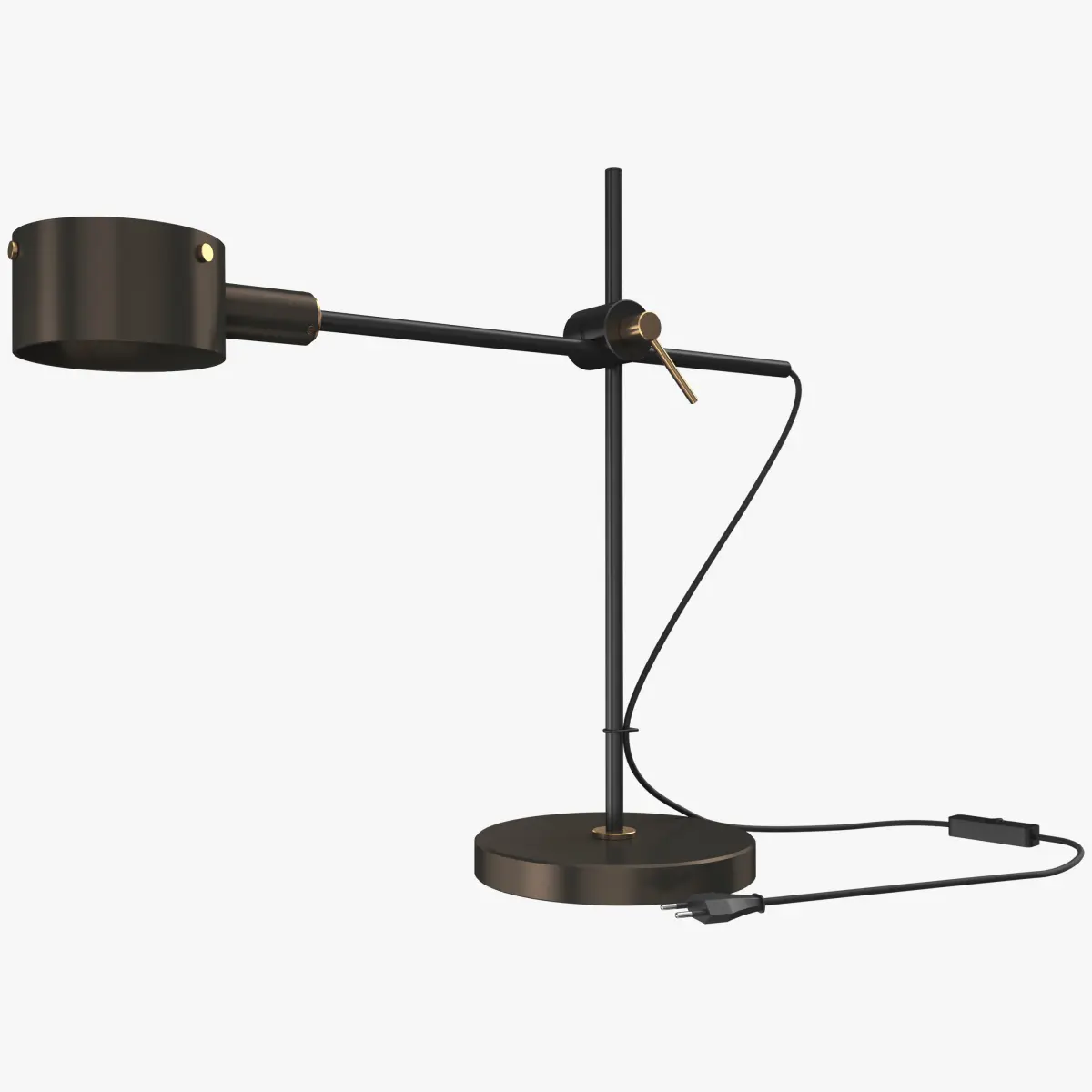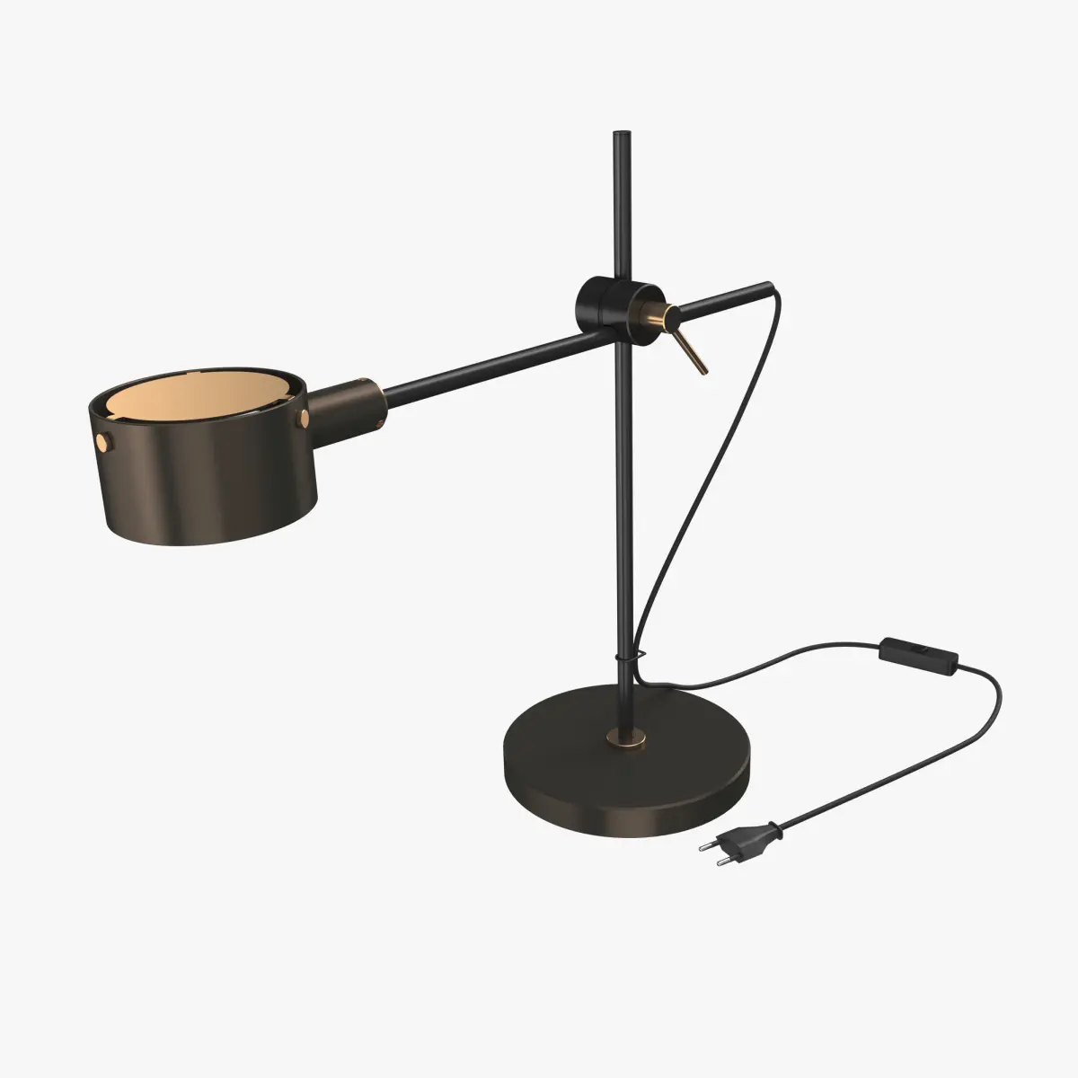 The G.O. lamp is the revival edition of a model designed for Oluce by Giuseppe Ostuni in the 1960s. A lamp that, in the essence of its design, is extremely current, characterised by a vertical shaft from which a horizontal arm branches off and on which the lampshade is mounted. The arm, thanks to the system of joints, is therefore a sliding element that can be repositioned and oriented depending on specific needs.