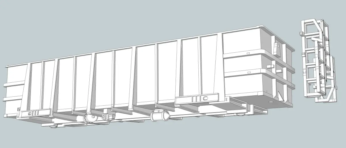 This printable G1 Phosphate Gondola model in HO 1:87 scale and N 1:160 scale just needs trucks and couplers/box. These are rotary dump gondolas that have been hauling phosphate in Central Florida since the 1970s by Seaboard Coast Line, Family Lines, Seaboard System, and CSX. The HO model consists of five STL files: the car body and four ladders (one piece models with ladders attached are also included). The N model comes in two forms, one with separate ladders and one with molded on ladders. Also included are HO and N Sketchup files. The Sketchup files are water tight, print ready, and can be edited and rescaled. Note that the scaling in the Sketchup files is ten times larger than the scale size due to Sketchup performing poorly at tiny scales. The HO scale body measures 134mm.