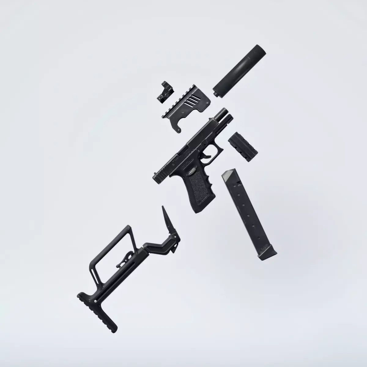 Probably the most famous striker fired pistol. This variant is a selector fire one, capable of automatic fire. Includes various attachments so you can configure it in many ways- from the simple pistol with no attachments to a tactical silenced tool. Converted and rigged for use in Daz, so you can make more realistic pictures, with moving slide, pulled trigger etc.